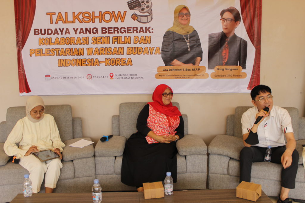 JAKARTA – Fakultas Bahasa dan Sastra (FBS) Program Studi Bahasa Korea Universitas Nasional (UNAS) sukses menggelar Talkshow yang menarik perhatian bertajuk “Budaya yang Bergerak: Kolaborasi Seni Film dan Pelestarian Warisan Budaya Indonesia-Korea.” Acara ini diselenggarakan pada hari Rabu, 10 Desember 2025, di Ruang Exhibition Room, Universitas Nasional.