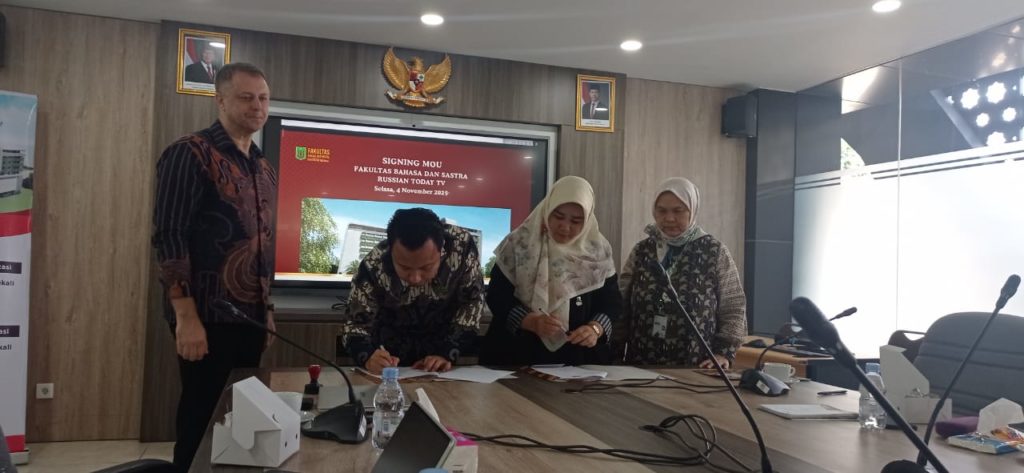 Jakarta (UNAS) – Fakultas Bahasa dan Sastra (FBS) Universitas Nasional menjalin kerja sama strategis dengan RT TV (Russia Today TV) melalui penandatanganan Memorandum of Understanding (MoU) yang dilaksanakan pada Selasa, pukul 10.00 WIB, bertempat di Lounge Universitas Nasional.