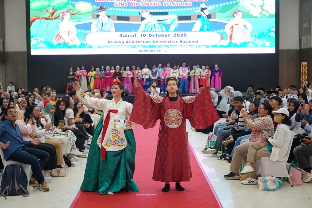 Jakarta (UNAS) – Fakultas Bahasa dan Sastra (FBS) Universitas Nasional kembali membuktikan diri sebagai motor penggerak diplomasi budaya internasional melalui penyelenggaraan “Hanbok Festival” yang bekerja sama dengan Korean Cultural Center Indonesia (KCCI) dalam rangka memperingati 52 tahun hubungan diplomatik Indonesia–Korea, Jumat (10/10), di Auditorium UNAS.