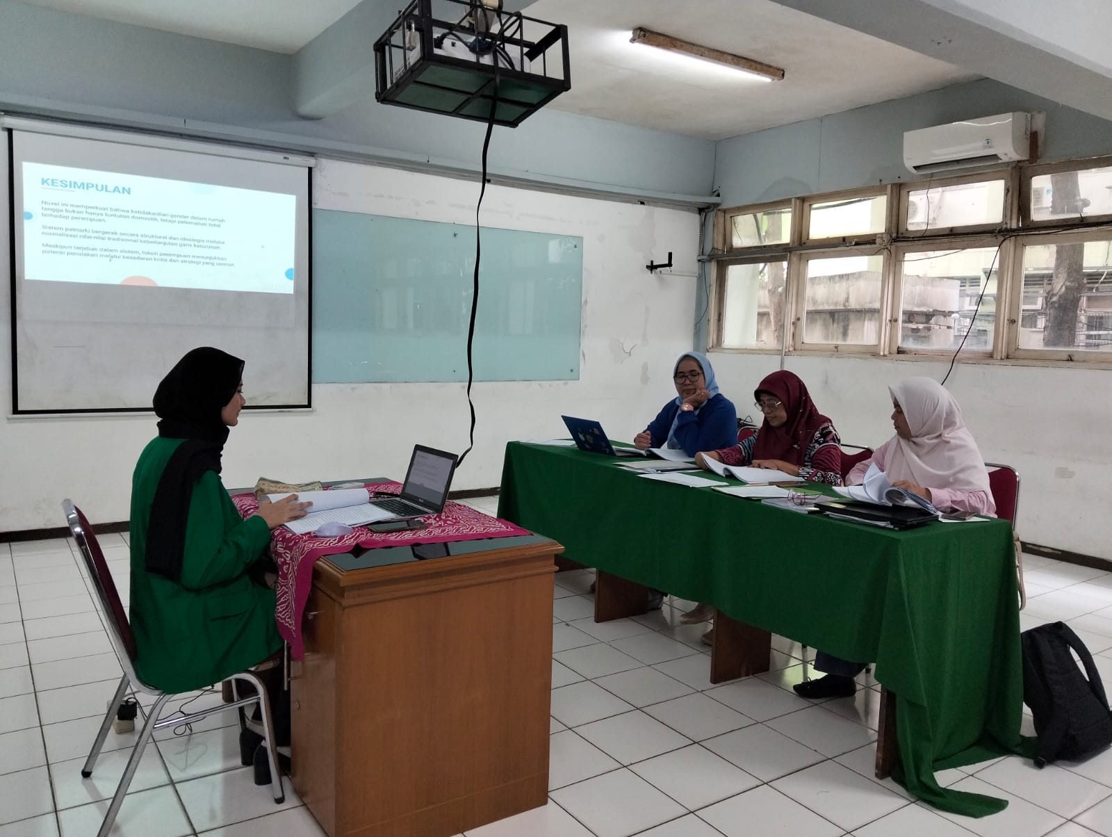 Dalam pelaksanaannya, setiap peserta sidang mempresentasikan hasil penelitian secara terstruktur, dilanjutkan dengan sesi tanya jawab dan diskusi akademik yang mendalam. Para dosen penguji memberikan evaluasi serta masukan konstruktif guna menyempurnakan substansi dan teknis penulisan karya ilmiah mahasiswa. Proses sidang berlangsung dengan tertib, objektif, dan mengedepankan prinsip penilaian berbasis capaian pembelajaran lulusan serta standar mutu akademik yang berlaku di lingkungan Program Studi Sastra Jepang.