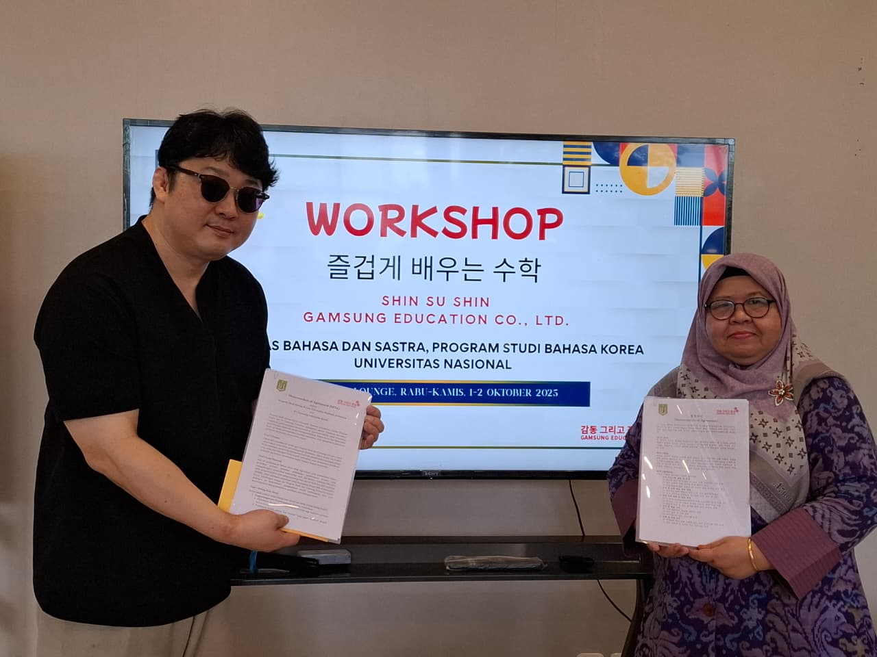 Jakarta (UNAS) – Program Studi Bahasa Korea Fakultas Bahasa dan Sastra (FBS) Universitas Nasional resmi menjalin kerja sama dengan Gamsung Education Korea melalui penandatanganan Memorandum of Agreement (MoA). Kolaborasi ini menjadi langkah strategis dalam memperkuat pengembangan akademik, peningkatan kompetensi mahasiswa, serta perluasan jejaring internasional.
