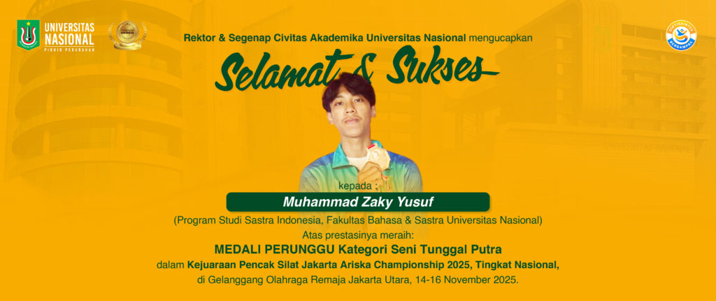 Rektor Universitas Nasional, Dekan & Segenap Civitas Akademika Fakultas Bahasa dan Sastra, mengucapkan
