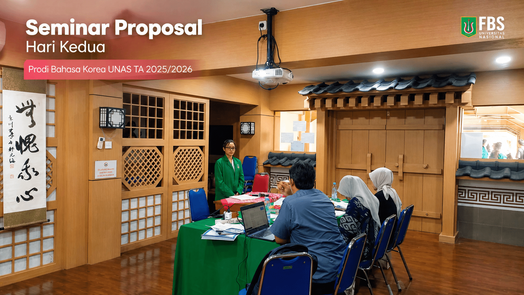 Jakarta (UNAS) – Program Studi Bahasa Korea, Fakultas Bahasa dan Sastra, Universitas Nasional (UNAS), kembali menyelenggarakan kegiatan Seminar Proposal Tahun Akademik 2025/2026 hari kedua pada Kamis, 30 April 2026, bertempat di Ruang KCU UNAS. Kegiatan ini merupakan bagian dari tahapan akademik penting bagi mahasiswa dalam mempresentasikan rancangan penelitian skripsi sebelum memasuki proses penelitian lebih lanjut.
