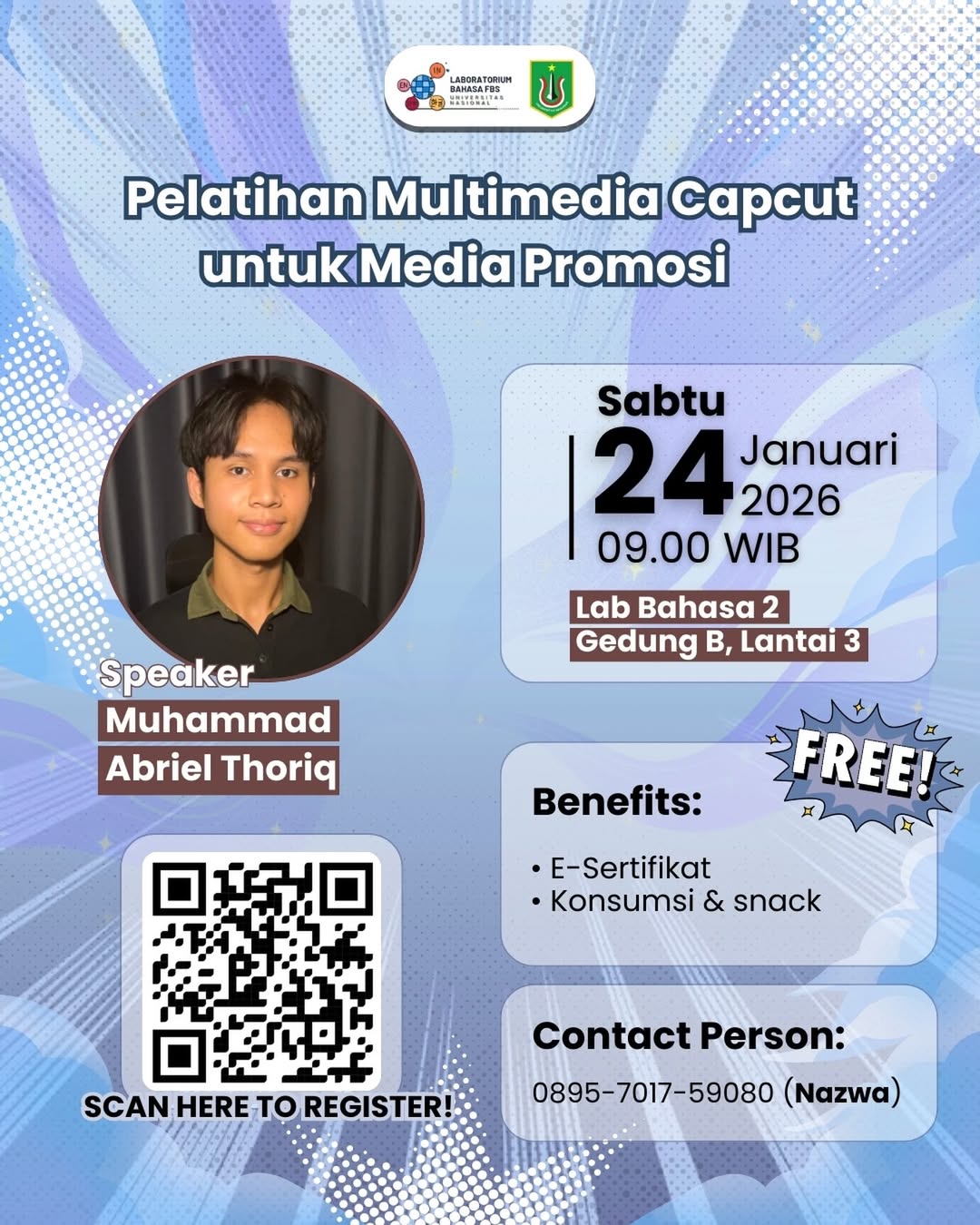 📍 Lab Bahasa 2, Gedung B Lantai 3, Universitas Nasional