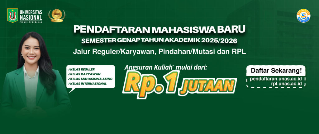 UNIVERSITAS NASIONAL membuka kesempatan emas bagi Anda untuk melanjutkan pendidikan tinggi di Semester Genap Tahun Akademik 2025/2026!