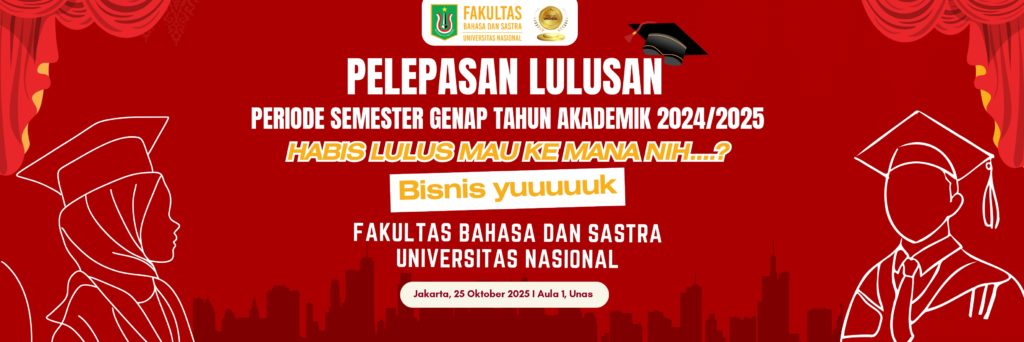 Jakarta (UNAS) – Fakultas Bahasa dan Sastra (FBS) Universitas Nasional akan menggelar Pelepasan Lulusan Periode Semester Genap Tahun Akademik 2024/2025 pada Jumat, 25 Oktober 2025 bertempat di Aula 1, Universitas Nasional.