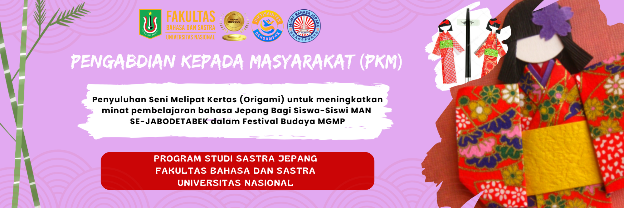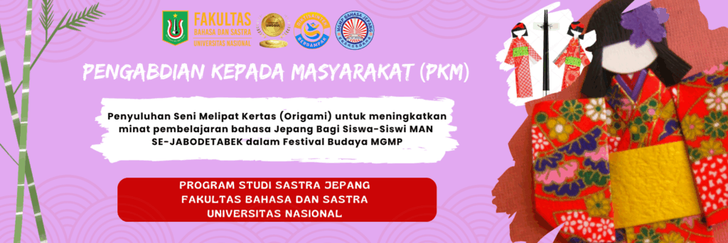 Jakarta (UNAS) – Program Studi Sastra Jepang, Fakultas Bahasa dan Sastra, Universitas Nasional kembali melaksanakan kegiatan Pengabdian Kepada Masyarakat (PKM) dengan tema “Penyuluhan Seni Melipat Kertas (Origami) untuk Meningkatkan Minat Pembelajaran Bahasa Jepang bagi Siswa-Siswi MAN se-Jabodetabek dalam Festival Budaya MGMP.”